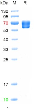 The purity of the protein is greater than 90% as determined by reducing SDS-PAGE.