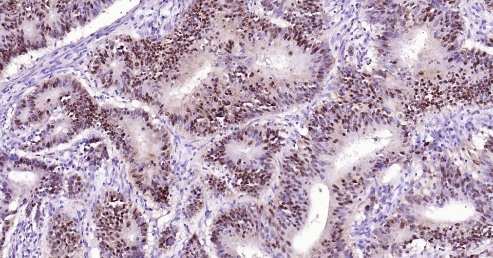 Paraformaldehyde-fixed, paraffin embedded Human Colon Cancer; Antigen retrieval by boiling in sodium citrate buffer (pH6.0) for 15 min; Antibody incubation with SOX9 Monoclonal Antibody, Unconjugated(bsm-63031R) at 1:400 overnight at 4°C, followed by conjugation to the bs-0295G-HRP and DAB (C-0010) staining.
