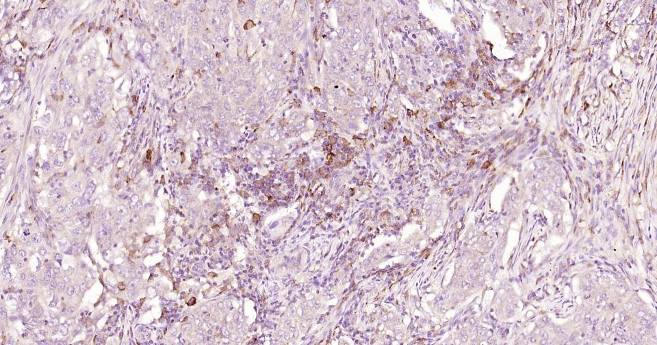Paraformaldehyde-fixed, paraffin embedded Human Colon Cancer; Antigen retrieval by boiling in sodium citrate buffer (pH6.0) for 15 min; Antibody incubation with CD163 Monoclonal Antibody, Unconjugated(bsm-63033R) at 1:200 overnight at 4°C, followed by conjugation to the SP Kit (Rabbit, SP-0023)and DAB (C-0010) staining.