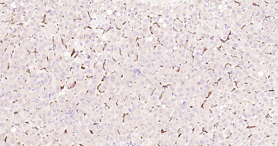 Paraformaldehyde-fixed, paraffin embedded Human Liver; Antigen retrieval by boiling in sodium citrate buffer (pH6.0) for 15 min; Antibody incubation with CD163 Monoclonal Antibody, Unconjugated(bsm-63033R) at 1:200 overnight at 4°C, followed by conjugation to the SP Kit (Rabbit, SP-0023)and DAB (C-0010) staining.