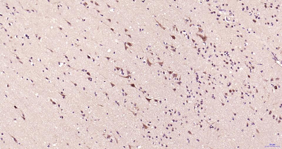 Paraformaldehyde-fixed, paraffin embedded Human Brain; Antigen retrieval by boiling in sodium citrate buffer (pH6.0) for 15 min; Antibody incubation with MEK2 Monoclonal Antibody, Unconjugated (bsm-63042R) at 1:200 overnight at 4°C, followed by conjugation to the bs-0295G-HRP and DAB (C-0010) staining.