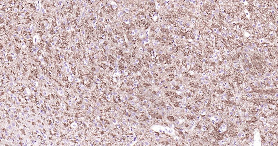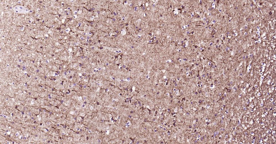 Paraformaldehyde-fixed, paraffin embedded Human Cerebrum; Antigen retrieval by boiling in sodium citrate buffer (pH6.0) for 15 min; Antibody incubation alpha Internexin? Monoclonal Antibody, Unconjugated(bsm-54173R) at 1:200 overnight at 4°C, followed by conjugation to the bs-0295G-HRP and DAB (C-0010) staining.