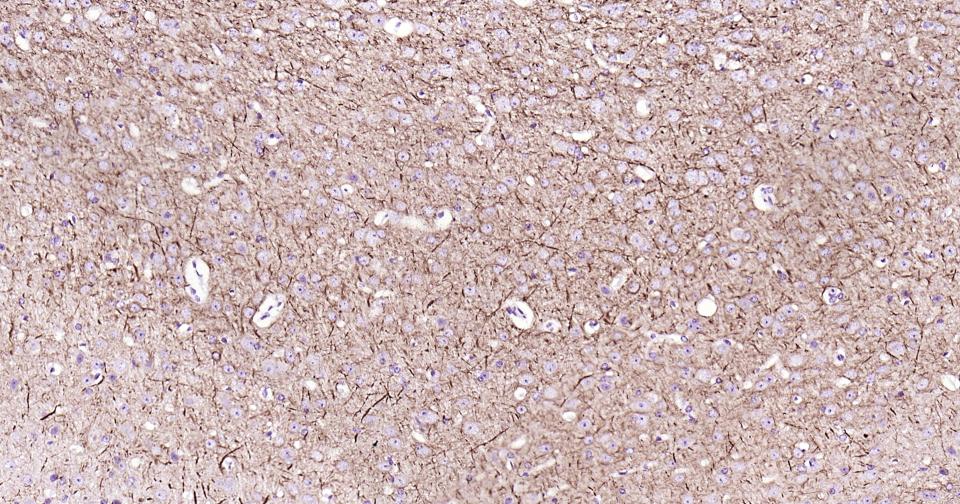 Paraformaldehyde-fixed, paraffin embedded Rat Cerebrum; Antigen retrieval by boiling in sodium citrate buffer (pH6.0) for 15 min; Antibody incubation alpha Internexin? Monoclonal Antibody, Unconjugated(bsm-54173R) at 1:200 overnight at 4°C, followed by conjugation to the bs-0295G-HRP and DAB (C-0010) staining.