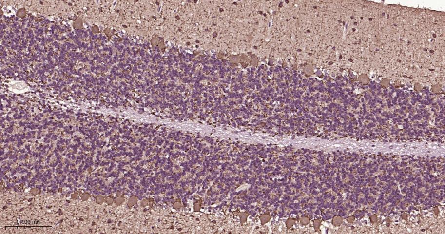 Paraformaldehyde-fixed, paraffin embedded Mouse Cerebellum; Antigen retrieval by boiling in sodium citrate buffer (pH6.0) for 15 min; Antibody incubation with GAD65 Polyclonal Antibody, Unconjugated (bs-60890R) at 1:200 overnight at 4°C, followed by conjugation to the bs-0295G-HRP and DAB (C-0010) staining.