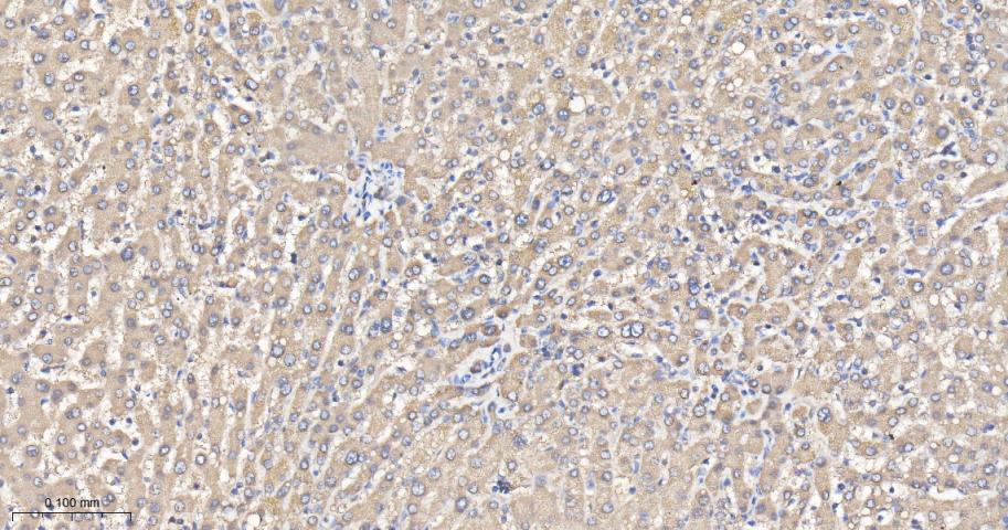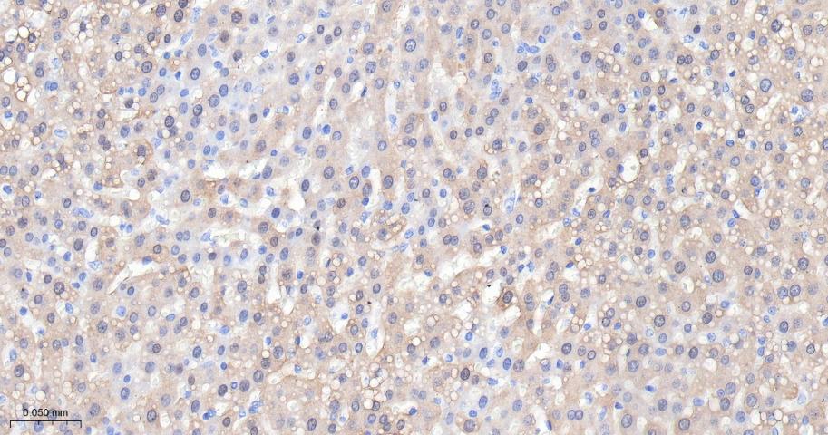 Paraformaldehyde-fixed, paraffin embedded Mouse Liver; Antigen retrieval by boiling in sodium citrate buffer (pH6.0) for 15 min; Antibody incubation with Aspartate Aminotransferase Monoclonal Antibody, Unconjugated(bsm-63078R) at 1:200 overnight at 4°C, followed by conjugation to the bs-0295G-HRP and DAB (C-0010) staining.