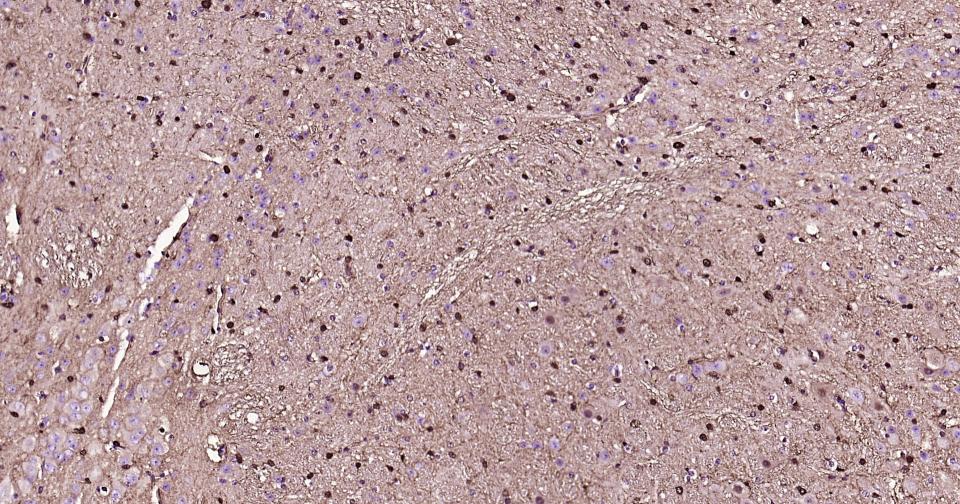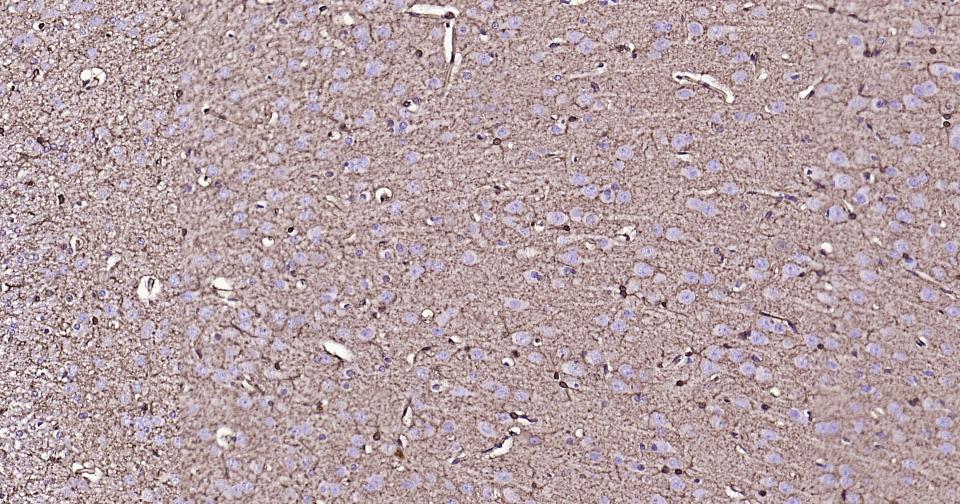 Paraformaldehyde-fixed, paraffin embedded Rat Cerebrum; Antigen retrieval by boiling in sodium citrate buffer (pH6.0) for 15 min; Antibody incubation with S100A1 Monoclonal Antibody, Unconjugated(bsm-63045R) at 1:200 overnight at 4°C, followed by conjugation to the bs-0295G-HRP and DAB (C-0010) staining.
