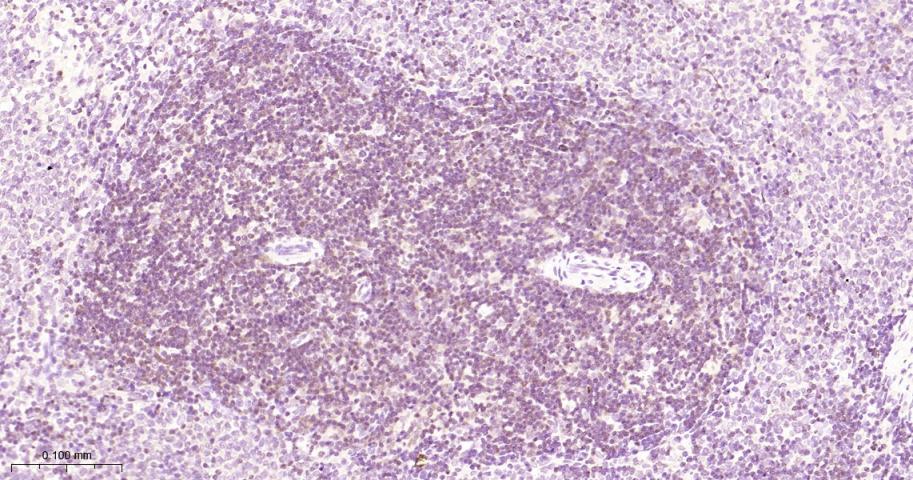 Paraformaldehyde-fixed, paraffin embedded Rat Spleen; Antigen retrieval by boiling in sodium citrate buffer (pH6.0) for 15 min; Antibody incubation with STAT5A/B Recombinant Monoclonal Antibody, Unconjugated(bsm-63080R) at 1:200 overnight at 4°C, followed by conjugation to the bs-0295G-HRP and DAB (C-0010) staining.