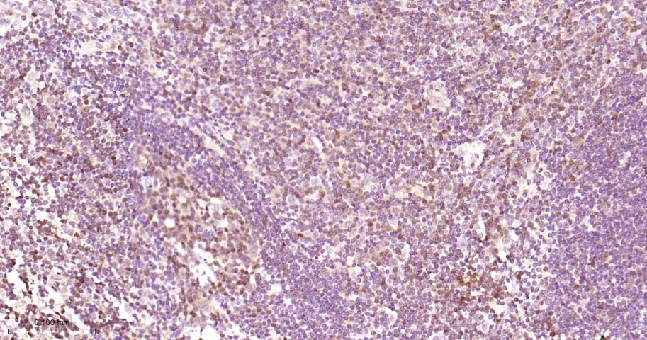 Paraformaldehyde-fixed, paraffin embedded Human Tonsil; Antigen retrieval by boiling in sodium citrate buffer (pH6.0) for 15 min; Antibody incubation with STAT5A/B Recombinant Monoclonal Antibody, Unconjugated(bsm-63080R) at 1:200 overnight at 4°C, followed by conjugation to the bs-0295G-HRP and DAB (C-0010) staining.