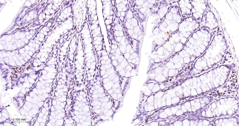 Paraformaldehyde-fixed, paraffin embedded Mouse Colon; Antigen retrieval by boiling in sodium citrate buffer (pH6.0) for 15 min; Antibody incubation with STAT5A/B Recombinant Monoclonal Antibody, Unconjugated(bsm-63080R) at 1:200 overnight at 4°C, followed by conjugation to the bs-0295G-HRP and DAB (C-0010) staining.