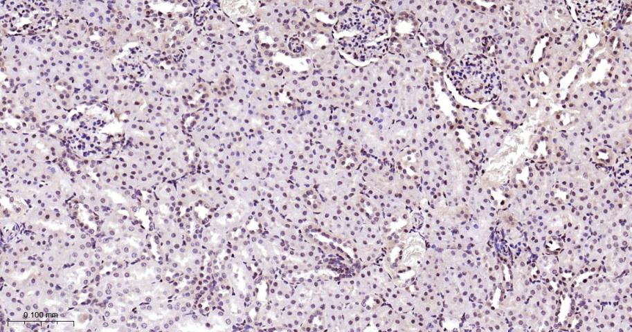 Paraformaldehyde-fixed, paraffin embedded Rat Kidney; Antigen retrieval by boiling in sodium citrate buffer (pH6.0) for 15 min; Antibody incubation with Phospho-mTOR(S2481) Monoclonal Antibody, Unconjugated(bsm-63079R) at 1:200 overnight at 4°C, followed by conjugation to the bs-0295G-HRP and DAB (C-0010) staining.