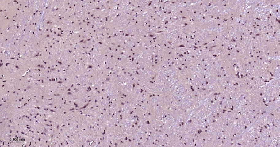 Paraformaldehyde-fixed, paraffin embedded Human Cerebrum; Antigen retrieval by boiling in sodium citrate buffer (pH6.0) for 15 min; Antibody incubation with Phospho-mTOR(S2481) Monoclonal Antibody, Unconjugated(bsm-63079R) at 1:200 overnight at 4°C, followed by conjugation to the bs-0295G-HRP and DAB (C-0010) staining.