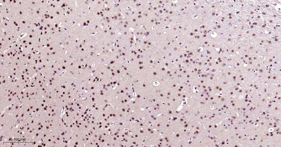 Paraformaldehyde-fixed, paraffin embedded Rat Cerebrum; Antigen retrieval by boiling in sodium citrate buffer (pH6.0) for 15 min; Antibody incubation with Phospho-mTOR(S2481) Monoclonal Antibody, Unconjugated(bsm-63079R) at 1:200 overnight at 4°C, followed by conjugation to the bs-0295G-HRP and DAB (C-0010) staining.