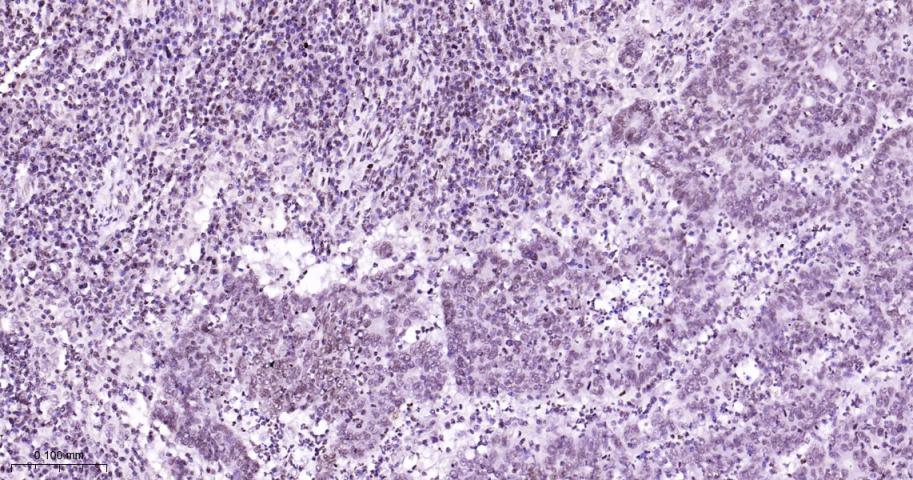 Paraformaldehyde-fixed, paraffin embedded Human Colon Cancer; Antigen retrieval by boiling in sodium citrate buffer (pH6.0) for 15 min; Antibody incubation with phospho-STAT5 (Y694) Monoclonal Antibody, Unconjugated(bsm-54554R) at 1:200 overnight at 4°C, followed by conjugation to the bs-0295G-HRP and DAB (C-0010) staining.