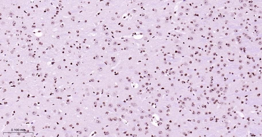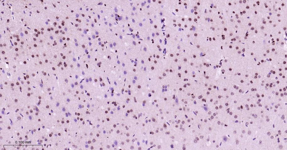 Paraformaldehyde-fixed, paraffin embedded Rat Cerebrum; Antigen retrieval by boiling in sodium citrate buffer (pH6.0) for 15 min; Antibody incubation with phospho-STAT5 (Y694) Monoclonal Antibody, Unconjugated(bsm-54554R) at 1:200 overnight at 4°C, followed by conjugation to the bs-0295G-HRP and DAB (C-0010) staining.