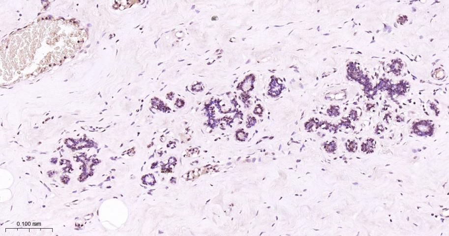 Paraformaldehyde-fixed, paraffin embedded Human Breast; Antigen retrieval by boiling in sodium citrate buffer (pH6.0) for 15 min; Antibody incubation with phospho-STAT5 (Y694) Monoclonal Antibody, Unconjugated(bsm-54554R) at 1:200 overnight at 4°C, followed by conjugation to the bs-0295G-HRP and DAB (C-0010) staining.