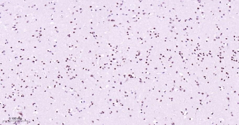 Paraformaldehyde-fixed, paraffin embedded Human Cerebrum; Antigen retrieval by boiling in sodium citrate buffer (pH6.0) for 15 min; Antibody incubation with phospho-STAT5 (Y694) Monoclonal Antibody, Unconjugated(bsm-54554R) at 1:200 overnight at 4°C, followed by conjugation to the bs-0295G-HRP and DAB (C-0010) staining.
