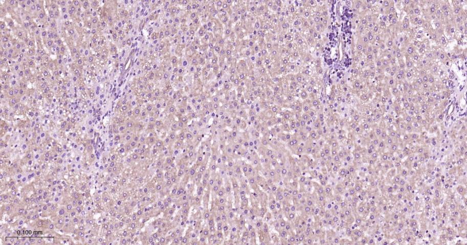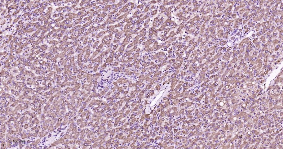 Paraformaldehyde-fixed, paraffin embedded Rat liver; Antigen retrieval by boiling in sodium citrate buffer (pH6.0) for 15 min; The section was incubated with PKC alpha Monoclonal Antibody, Unconjugated(bsm-63319R) at 1:200 overnight at 4°C, followed by conjugation to the bs-0295G-HRP and DAB (C-0010) staining.