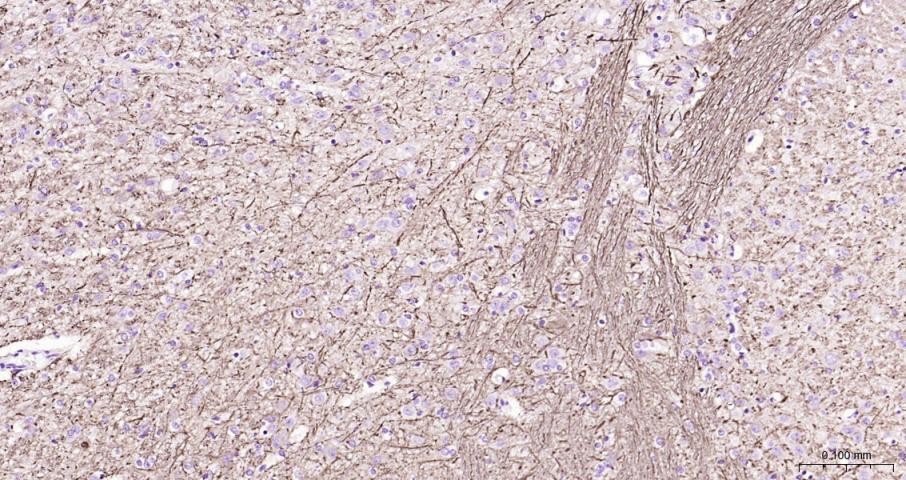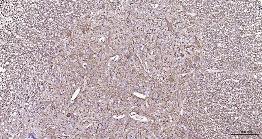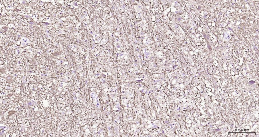 Paraformaldehyde-fixed, paraffin embedded Rat Cerebrum; Antigen retrieval by boiling in sodium citrate buffer (pH6.0) for 15 min; Antibody incubation with NF-L Monoclonal Antibody, Unconjugated(bsm-41217R) at 1:200 overnight at 4°C, followed by conjugation to the bs-0295G-HRP and DAB (C-0010) staining.