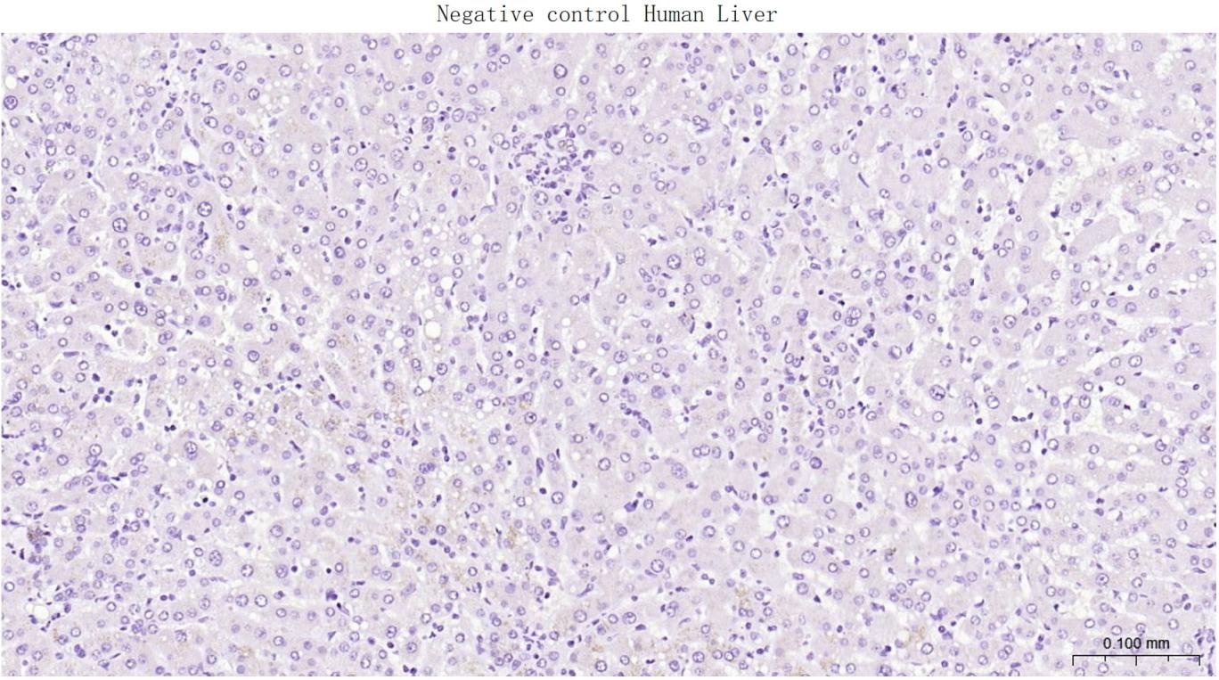 (Negative control) Paraformaldehyde-fixed, paraffin embedded Human Liver; Antigen retrieval by boiling in sodium citrate buffer (pH6.0) for 15 min; Antibody incubation with NF-L Monoclonal Antibody, Unconjugated(bsm-41217R) at 1:200 overnight at 4°C, followed by conjugation to the bs-0295G-HRP and DAB (C-0010) staining.