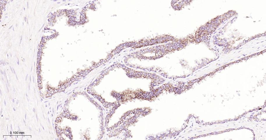 Paraformaldehyde-fixed, paraffin embedded Human Prostate Cancer; Antigen retrieval by boiling in sodium citrate buffer (pH6.0) for 15 min; Antibody incubation with BRAF Monoclonal Antibody, Unconjugated(bsm-63118R) at 1:200 overnight at 4°C, followed by conjugation to the bs-0295G-HRP and DAB (C-0010) staining.