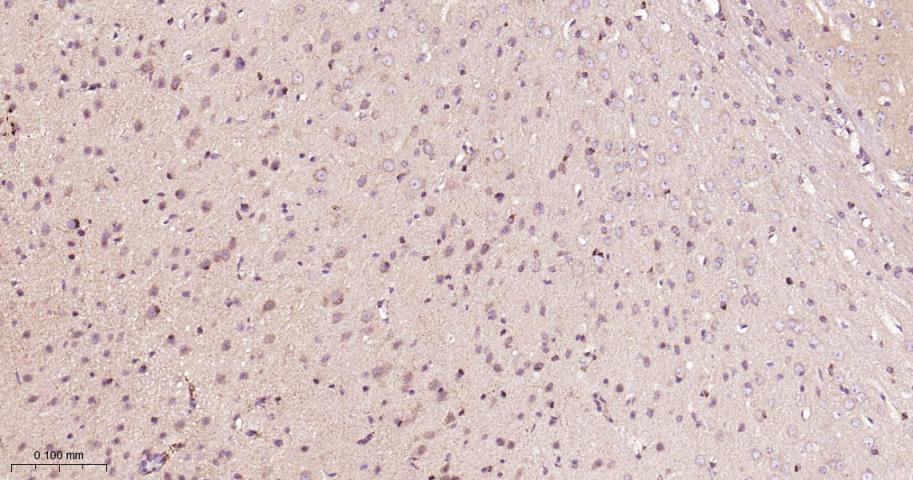 Paraformaldehyde-fixed, paraffin embedded Mouse Cerebrum; Antigen retrieval by boiling in sodium citrate buffer (pH6.0) for 15 min; Antibody incubation with BRAF Monoclonal Antibody, Unconjugated(bsm-63118R) at 1:200 overnight at 4°C, followed by conjugation to the bs-0295G-HRP and DAB (C-0010) staining.