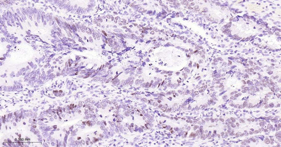 Paraformaldehyde-fixed, paraffin embedded Human Colon Cancer; Antigen retrieval by boiling in sodium citrate buffer (pH6.0) for 15 min; Antibody incubation with Rb Monoclonal Antibody, Unconjugated(bsm-63143R) at 1:200 overnight at 4°C, followed by conjugation to the bs-0295G-HRP and DAB (C-0010) staining.
