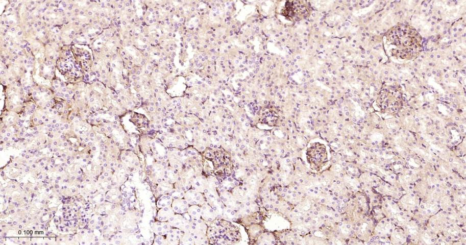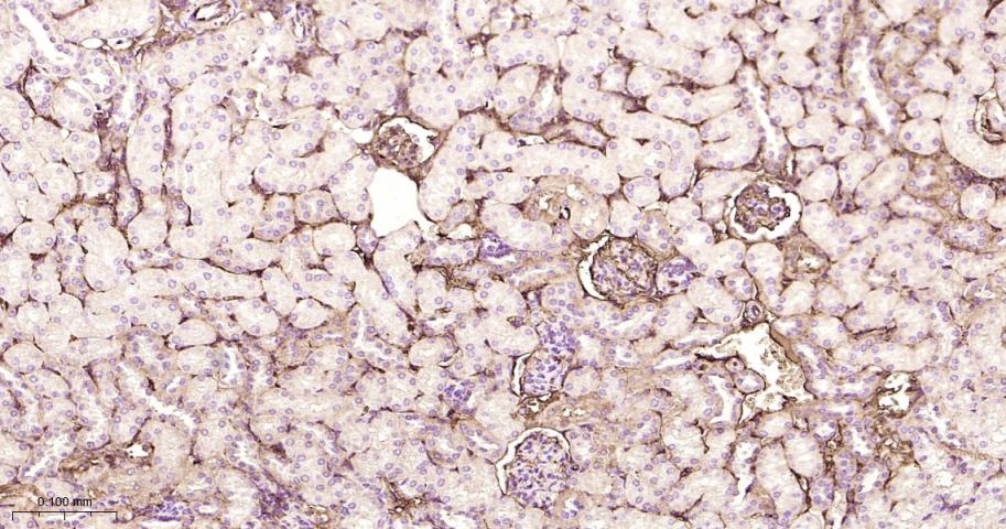 Paraformaldehyde-fixed, paraffin embedded Mouse Kidney; Antigen retrieval by boiling in sodium citrate buffer (pH6.0) for 15 min; Antibody incubation with Albumin Monoclonal Antibody, Unconjugated(bsm-63200R) at 1:200 overnight at 4°C, followed by conjugation to the bs-0295G-HRP and DAB (C-0010) staining.
