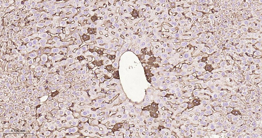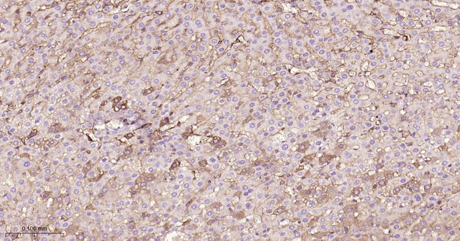 Paraformaldehyde-fixed, paraffin embedded Mouse Liver; Antigen retrieval by boiling in sodium citrate buffer (pH6.0) for 15 min; Antibody incubation with Albumin Monoclonal Antibody, Unconjugated(bsm-63200R) at 1:200 overnight at 4°C, followed by conjugation to the bs-0295G-HRP and DAB (C-0010) staining.