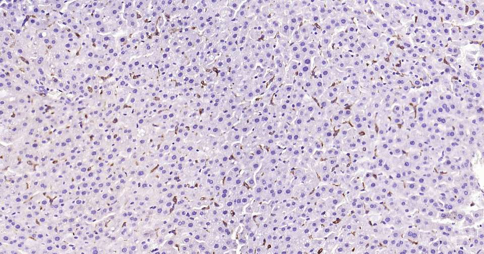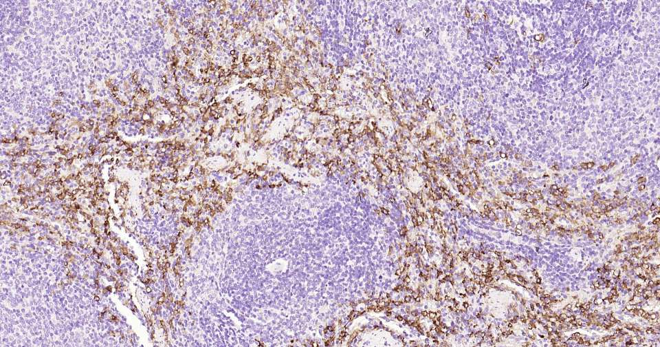 Immunohistochemical analysis of paraffin embedded rat spleen tissue slide using IHC0303R (Rat CD163 Kit).