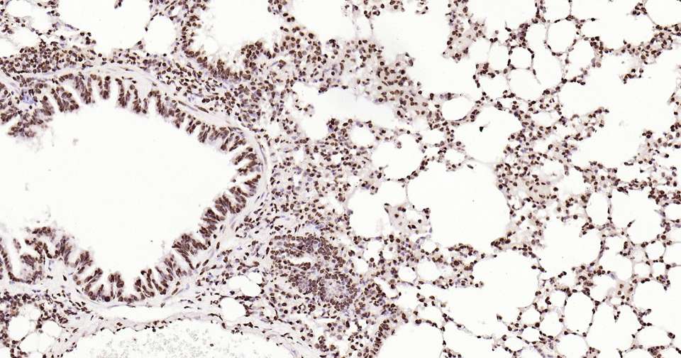 Immunohistochemical analysis of paraffin embedded mouse colon tissue slide using IHC0308M (Mouse Histone H2A.X Kit).