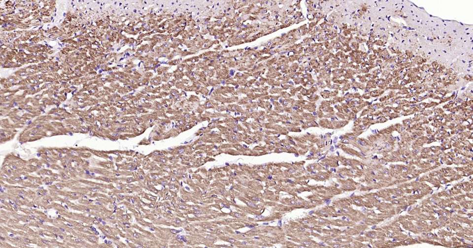 Immunohistochemical analysis of paraffin embedded mouse heart tissue slide using IHC0310 (Cytochrome C Kit).