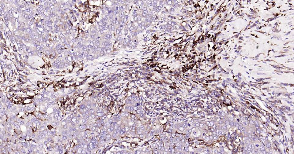 Immunohistochemical analysis of paraffin embedded human cervical cancer tissue slide using IHC0313H (Human Nrf2 Kit).