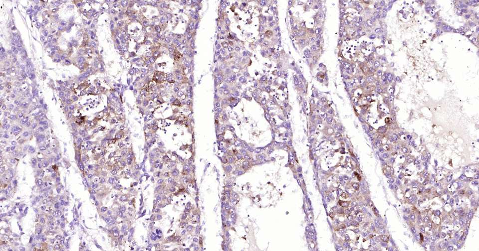 Immunohistochemical analysis of paraffin embedded human breast cancer tissue slide using IHC0313H (Human Nrf2 Kit).