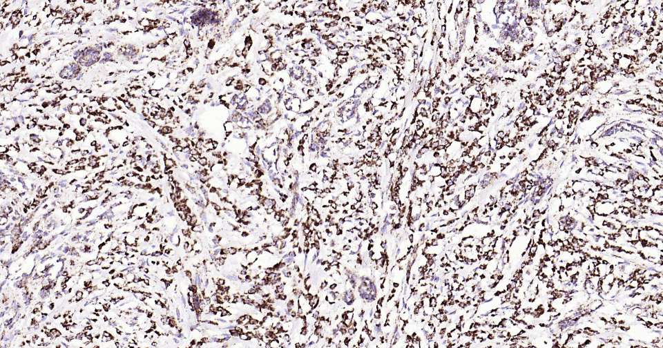 Immunohistochemical analysis of paraffin embedded human cervical cancer tissue slide using IHC0317H (Human HSP60 Kit).