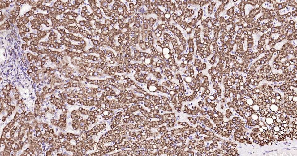 Immunohistochemical analysis of paraffin embedded human liver tissue slide using IHC0317H (Human HSP60 Kit).