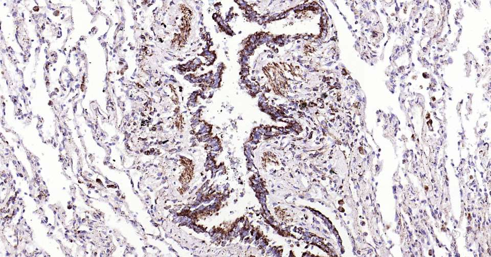 Immunohistochemical analysis of paraffin embedded human lung cancer tissue slide using IHC0317H (Human HSP60 Kit).