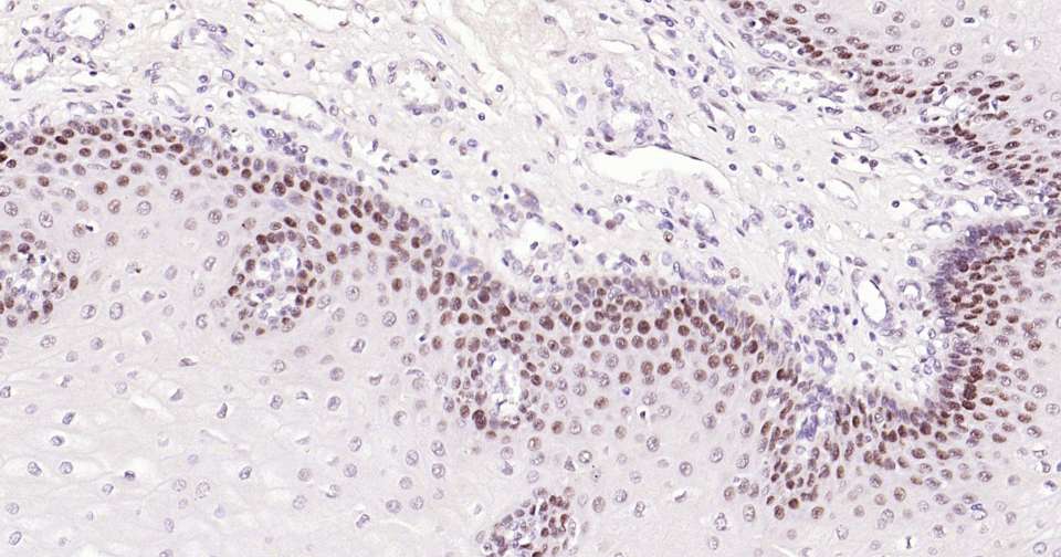 Immunohistochemical analysis of paraffin embedded human esophagus tissue slide using IHC0323H (Human MSH2 Kit).