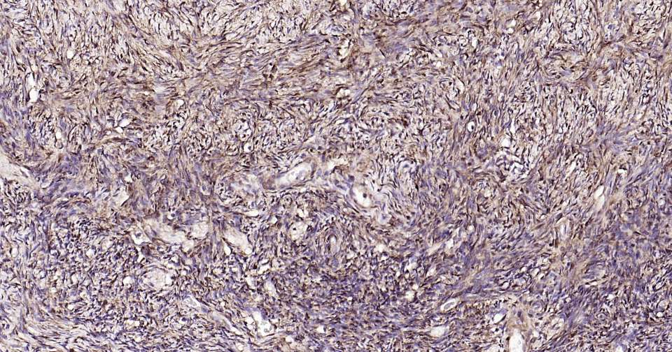 Immunohistochemical analysis of paraffin embedded human ovary tissue slide using IHC0326H (Mouse Galectin 3 Kit).