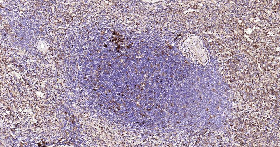 Immunohistochemical analysis of paraffin embedded human spleen tissue slide using IHC0326H (Mouse Galectin 3 Kit).