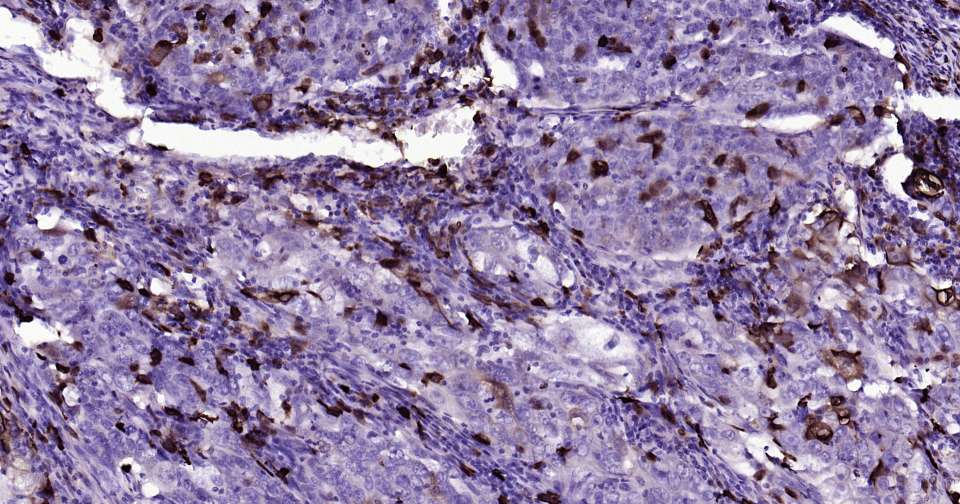 Immunohistochemical analysis of paraffin embedded human skin cancer tissue slide using IHC0335 (S100A8 Kit).