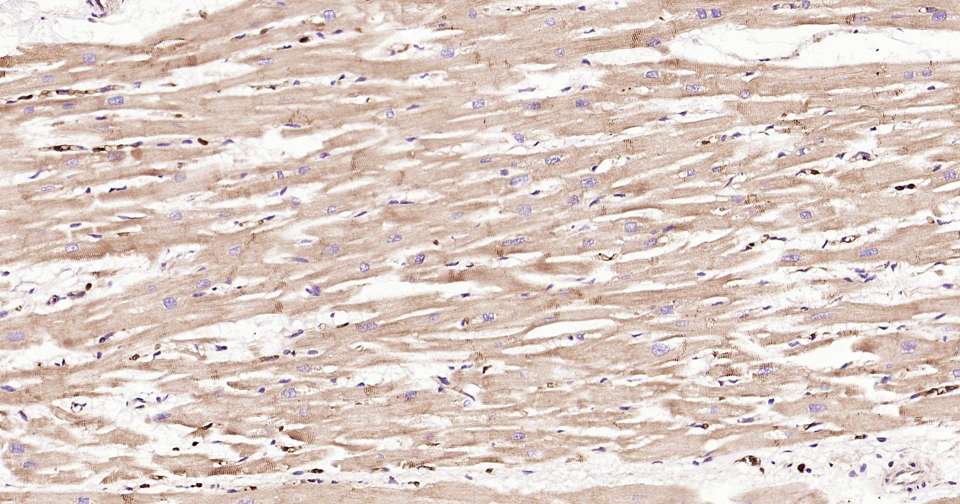 Immunohistochemical analysis of paraffin embedded human heart tissue slide using IHC0336H (Human APAF1 Kit).