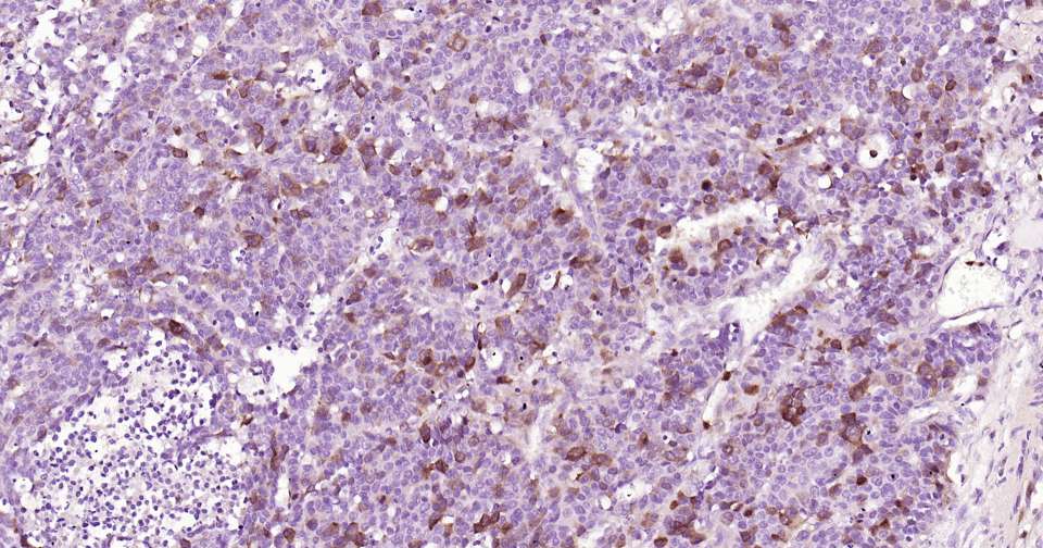 Immunohistochemical analysis of paraffin embedded human esophageal cancer tissue slide using IHC0344H (Human Phospho-CDK1/2 (Thr14) Kit).