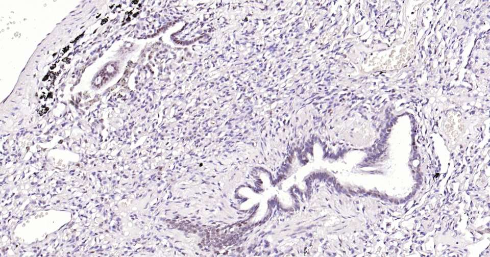 Immunohistochemical analysis of paraffin embedded human testis tissue slide using IHC0352H (Human phospho-Nrf2 (Ser40) Kit).