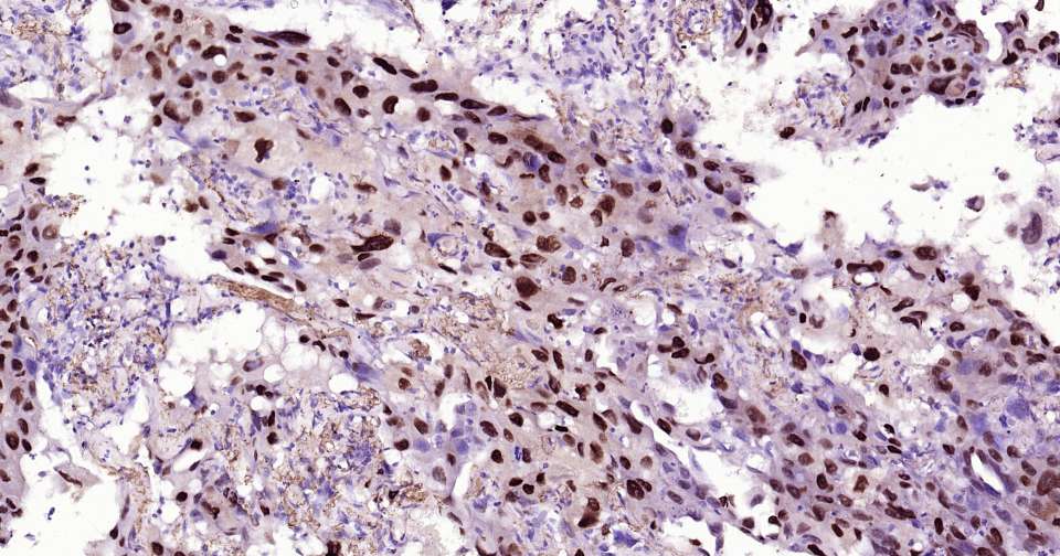 Immunohistochemical analysis of paraffin embedded human colon cancer tissue slide using IHC0359H (Human SOX9 Kit).