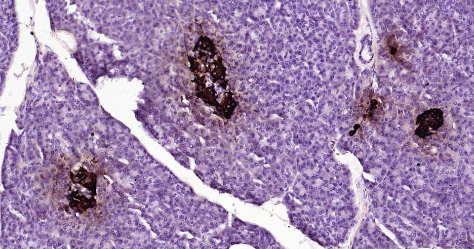 Immunohistochemical analysis of paraffin embedded human pancreas tissue slide using IHC0364 (Notch1 Kit).