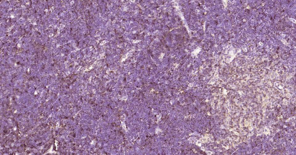 Immunohistochemical analysis of paraffin embedded mouse thymus tissue slide using IHC0366 (CD90 Kit).