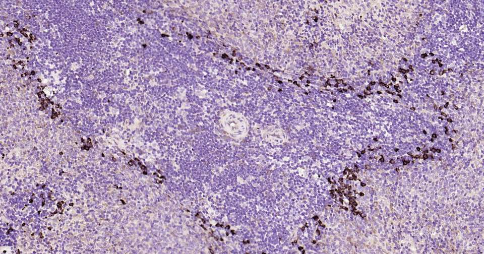 Immunohistochemical analysis of paraffin embedded mouse thymus tissue slide using IHC0396 (NALP3/CIAS1 IHC Kit).
