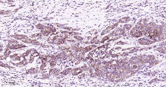 Immunohistochemical analysis of paraffin embedded human breast cancer tissue slide using IHC0422H (Human PBP IHC Kit).