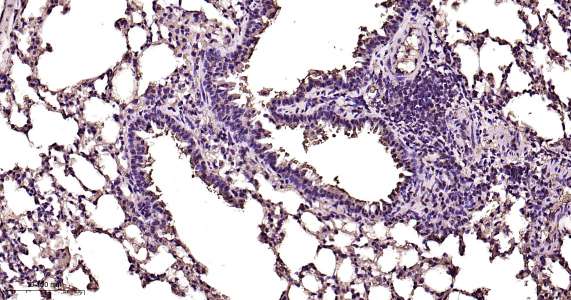 Immunohistochemical analysis of paraffin embedded mouse lung tissue slide using IHC0423 (VCP IHC Kit).