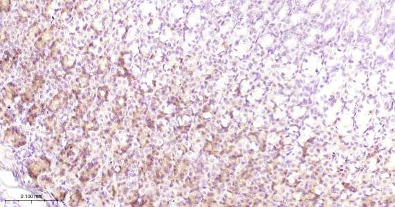 Immunohistochemical analysis of paraffin embedded human stomach tissue slide using IHC0463 (AGR2 IHC Kit).